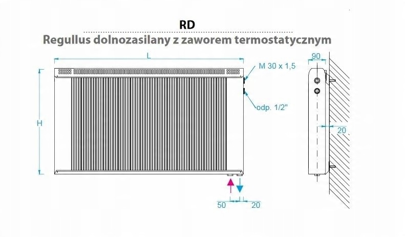 - нижнее подключение (RD)