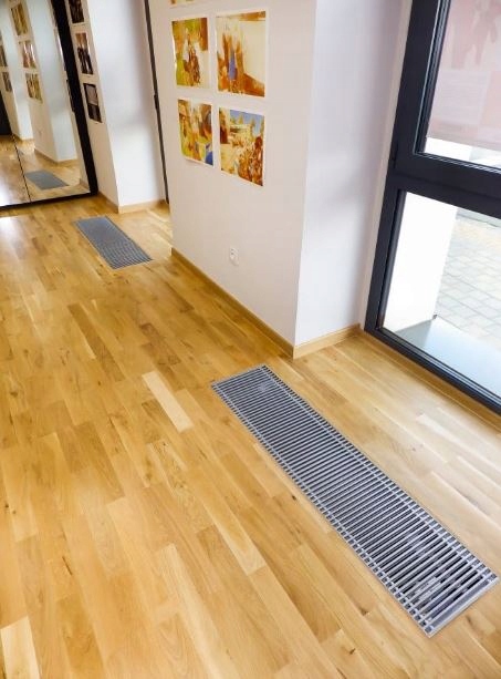 Отопление помещений динамическими радиаторами отопления, встроенными в пол, является отличной альтернативой поверхностному теплому полу, т. е. так называемому «теплому полу». Канальные теплообменники работают практически сразу после начала отопления. Вентилятор значительно увеличивает мощность установки, в предложение входит несколько моделей управления, в том числе с регулируемой скоростью вращения вентилятора. Внутрипольные обогреватели с вентилятором обеспечивают точный, энергосберегающий и легко контролируемый нагрев, эффективную работу в современных управляемых системах центрального отопления