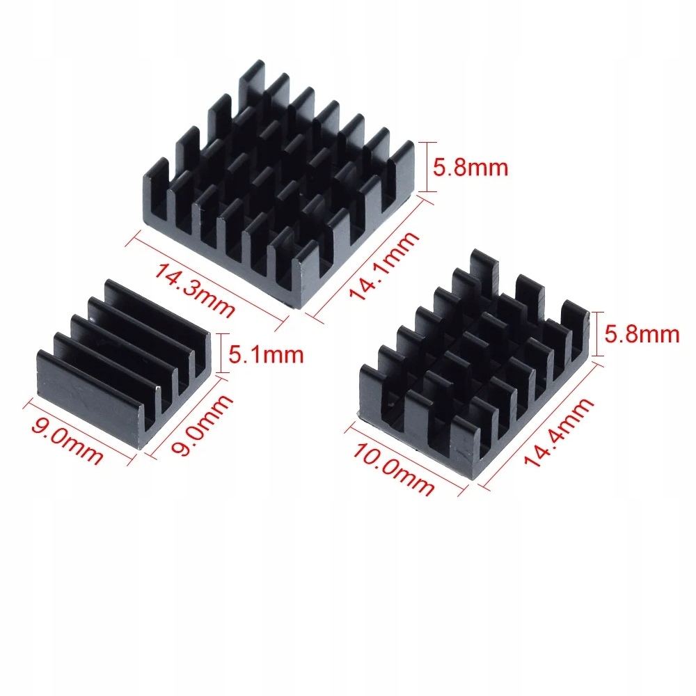 Radiatory Aluminiowe do Raspberry Pi czarne 3 szt
