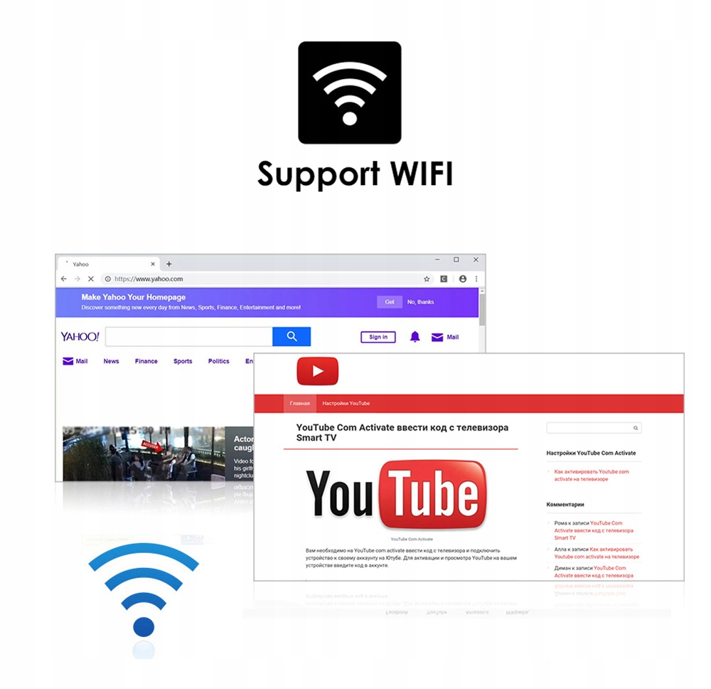 Функция Wi-Fi позволяет подключаться к Интернету. Вы можете смотреть видео на YouTube и слушать песни на Spotify. Радио имеет возможность загружать различные приложения, такие как Facebook, Messenger и т. д. из магазина Google Play.
