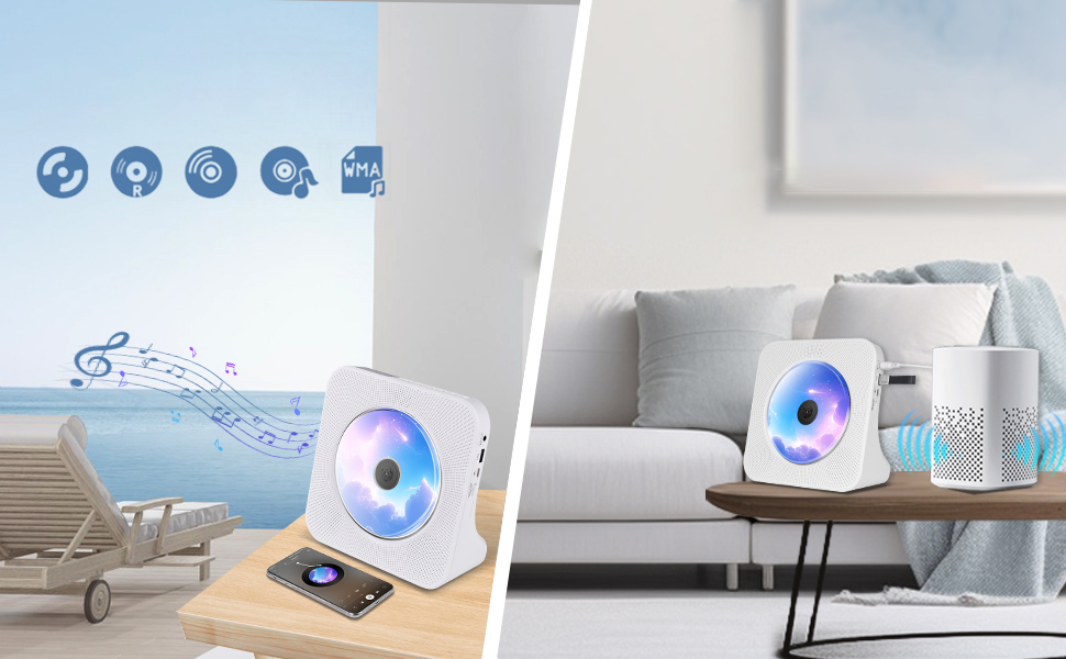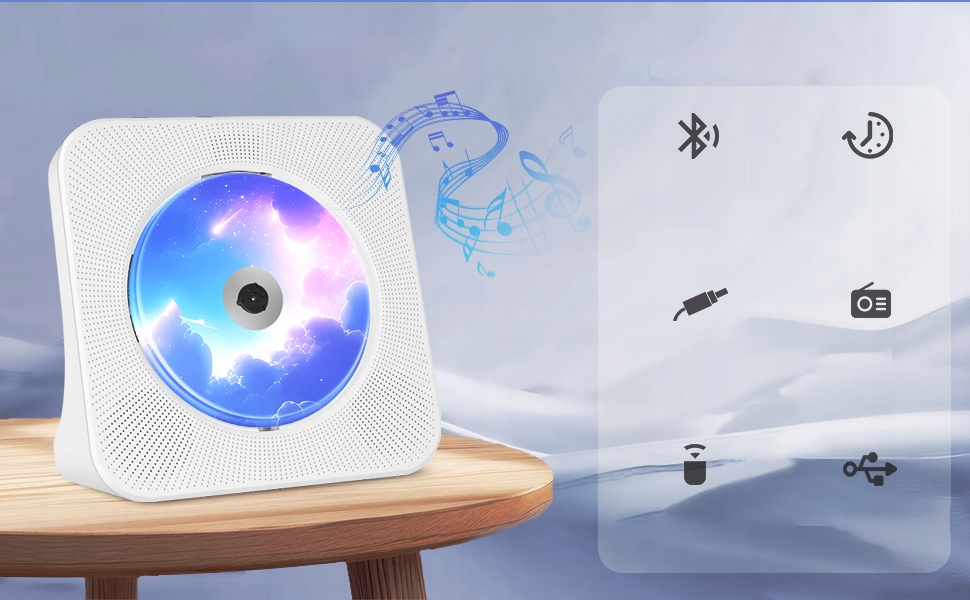 - Этот портативный настенный проигрыватель компакт-дисков оснащен технологией Bluetooth 5.0.