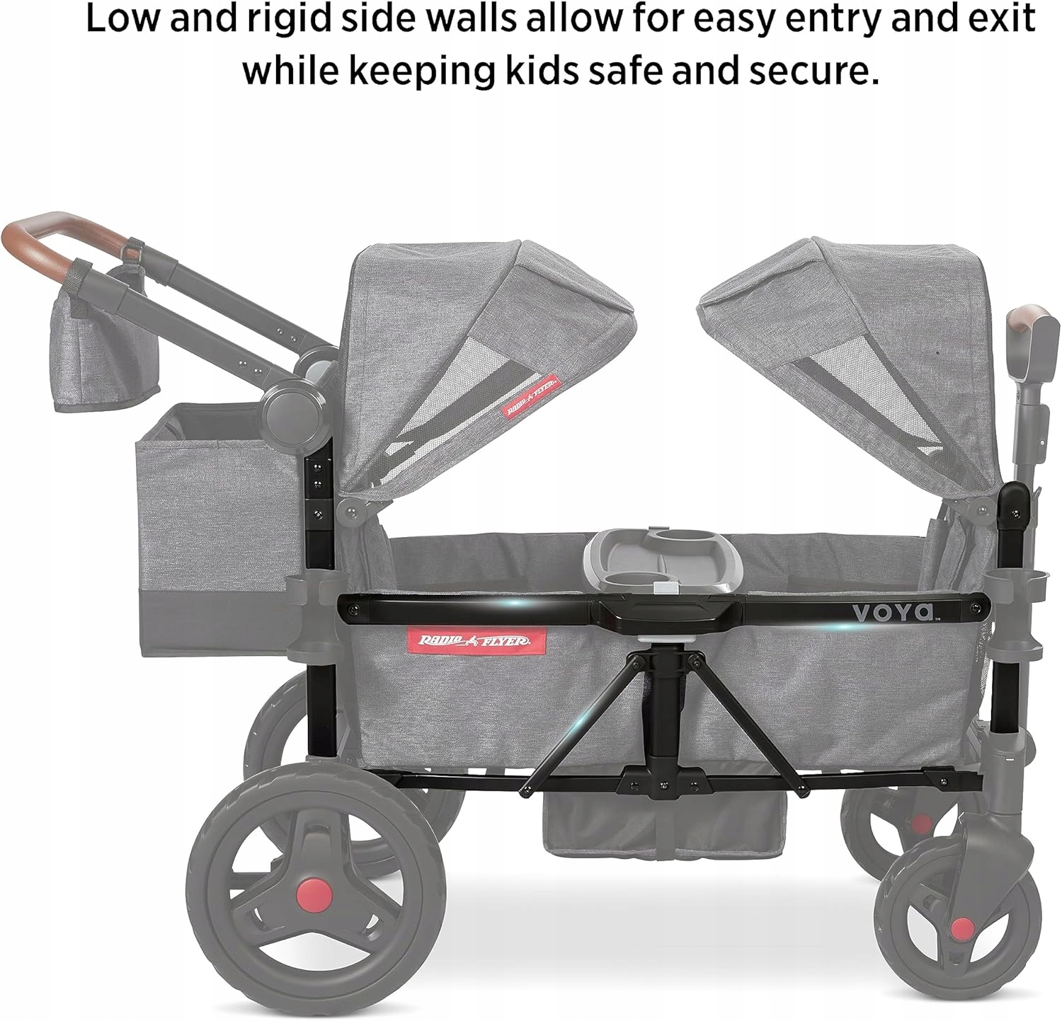 Коляска Radio Flyer Voya Stroller Wagon прекрасно сочетает в себе комфорт и стиль, предлагая просторное сиденье для двоих детей. Благодаря низким бортам дети могут легко садиться и выходить, что упрощает повседневные путешествия.