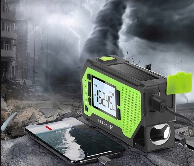 - Аварийная радиостанция Feegar OZE PRO имеет встроенный аккумулятор емкостью 2000 мАч, который также можно заряжать с помощью солнечной панели и рукоятки динамо-машины. Это идеальный вариант для укромных и тихих мест, где поблизости нет розетки. Дополнительно его можно питать от радиоприемника с помощью батареек ААА или через USB-кабель, входящий в комплект.