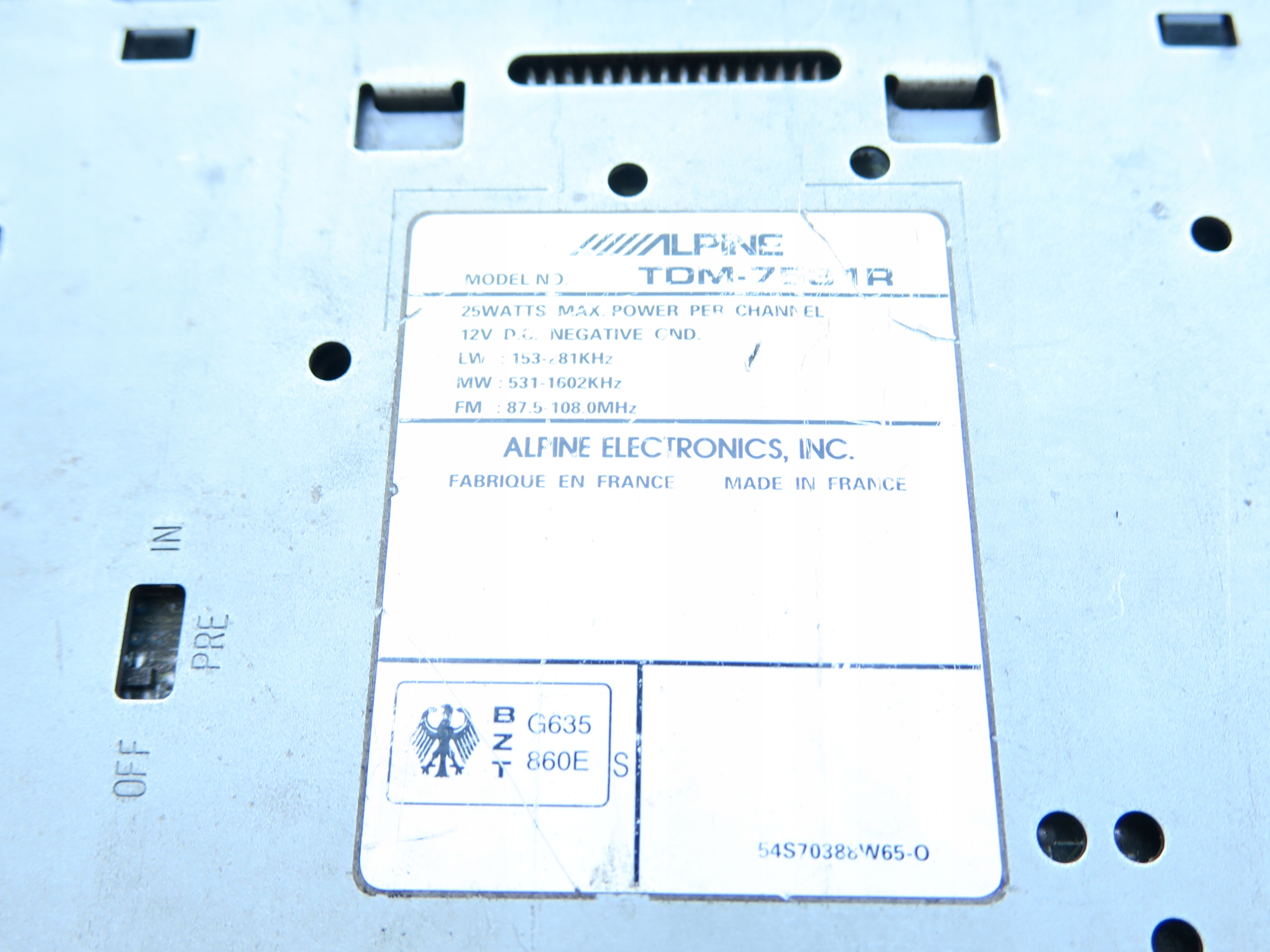 ОРИГИНАЛЬНАЯ КАССЕТНАЯ РАДИО ALPINE TDM-7531R, РАДИО РАЗРАБОТАЛОСЬ ПОСЛЕ ПОДКЛЮЧЕНИЯ К ПИТАНИЮ, ПОЭТОМУ ПРОДАЕМ КАК ПОВРЕЖДЕННУЮ ПО НАЗНАЧЕНИЮ НА ЗАПЧАСТИ, ПРОДАЕМ ИМЕННО ТО, ЧТО ПОКАЗАНО НА ФОТО, ВИЗУАЛЬНОЕ СОСТОЯНИЕ: DB+ (ИЗНОШЕННЫЕ КЛЮЧИ) , ОКОНЧАТЕЛЬНАЯ ЦЕНА, ВО ИЗБЕЖАНИЕ НЕПОНЯТНИЦИЙ, ПОЖАЛУЙСТА, СРАВНИТЕ ТОВАР С СВОИМ.