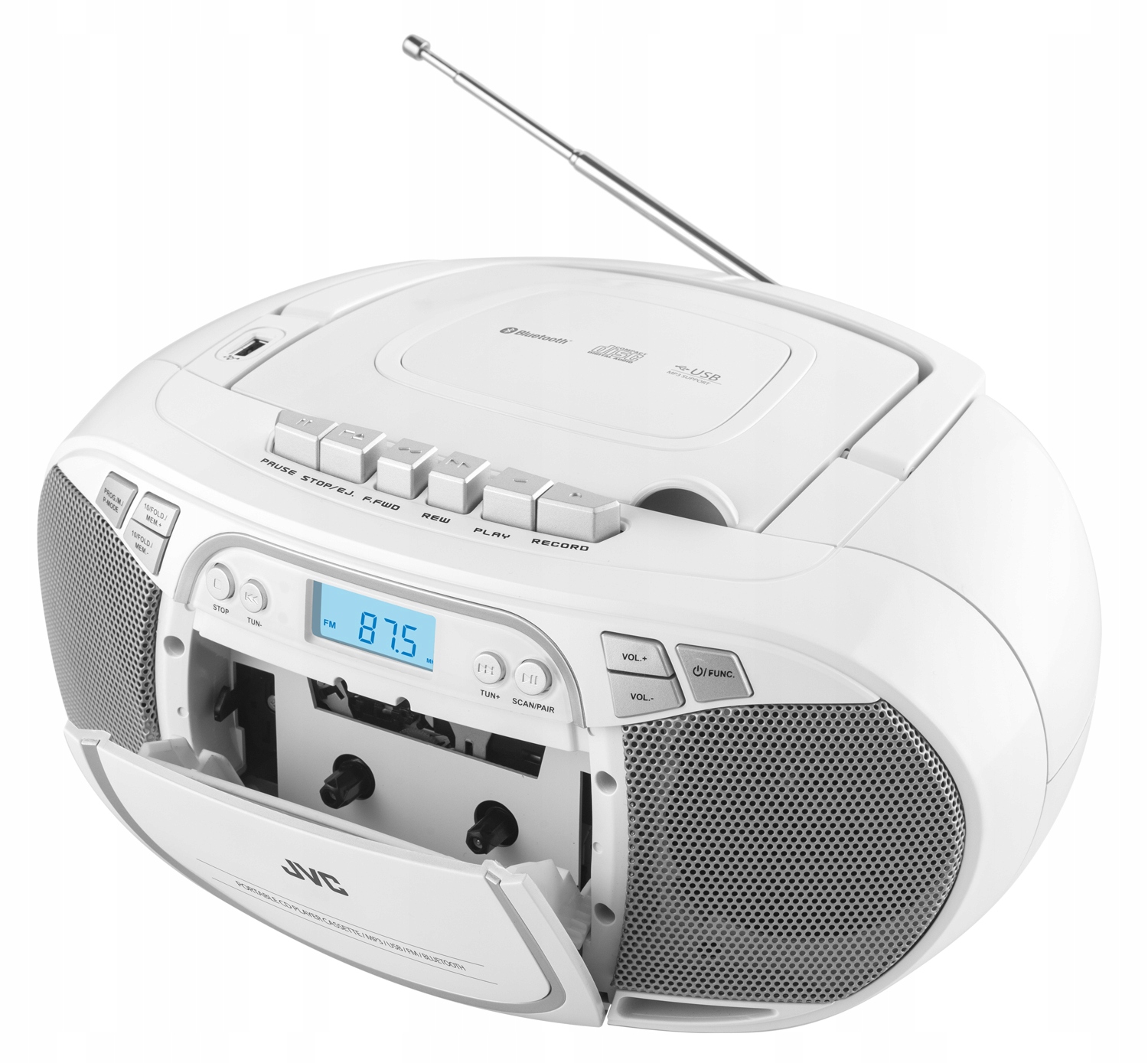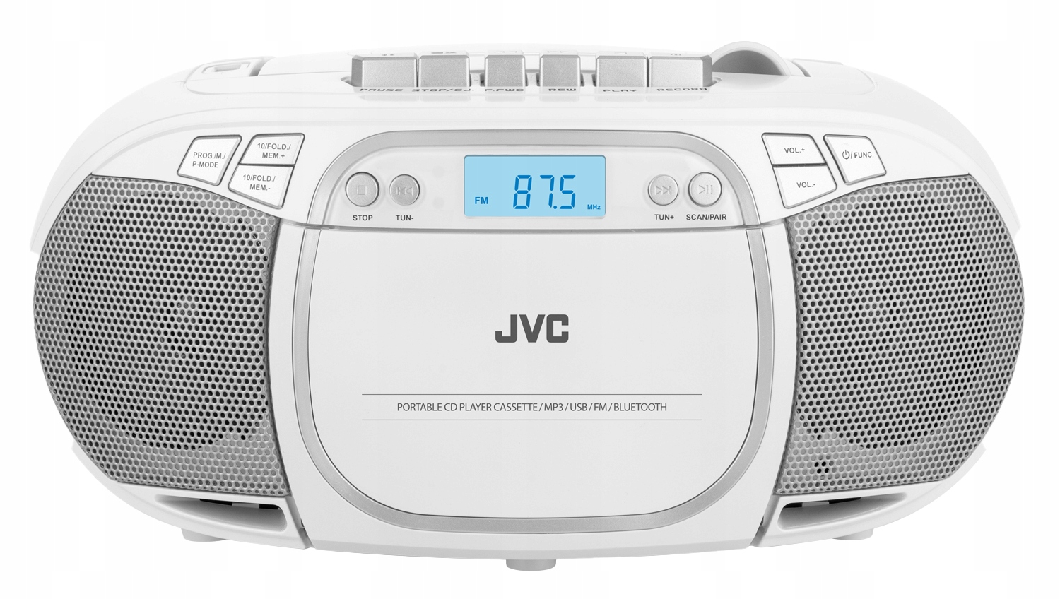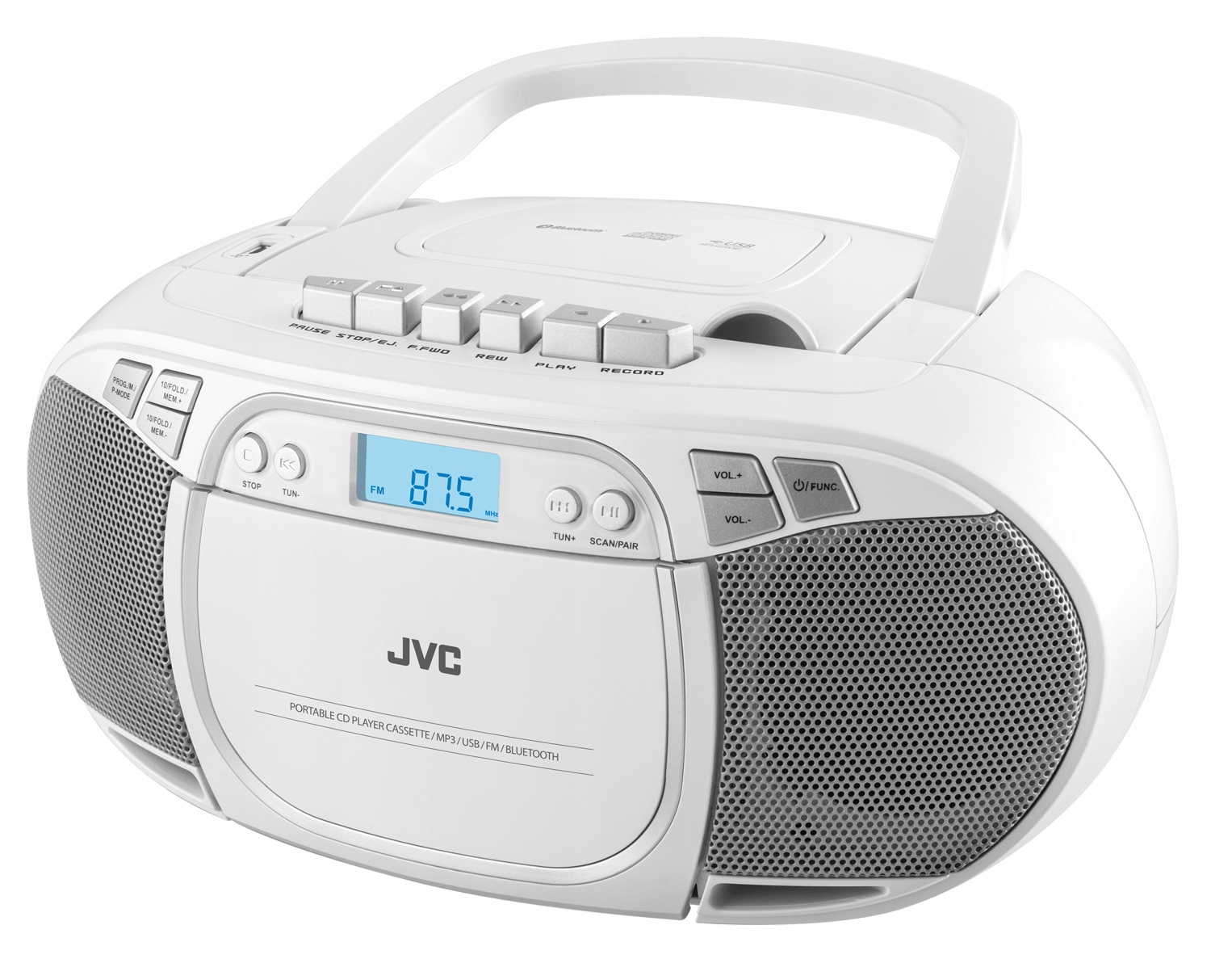 РАДИОПРОИГРЫВАТЕЛЬ FM-РАДИОЗАПИСЬ БУМБОКС JVC CD USB BLUETOOTH БЕЛЫЙ