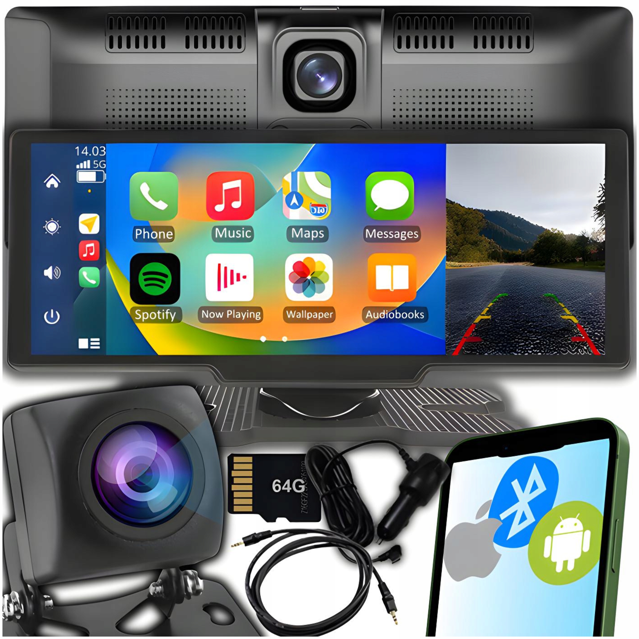 RADIO STACJA MULTIMEDIALNA MONITOR ANDROID AUTO APPLE CARPLAY DVR 2 KAMERY