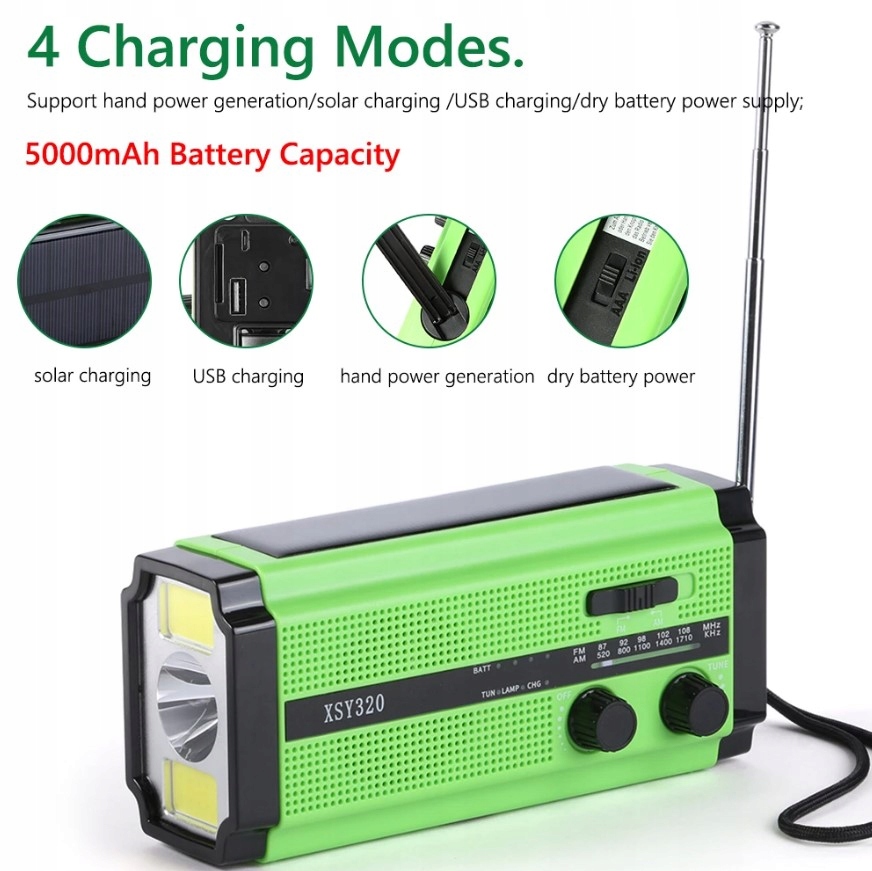Радио со светодиодным / ДИНАМО / СОЛНЕЧНЫМ фонариком