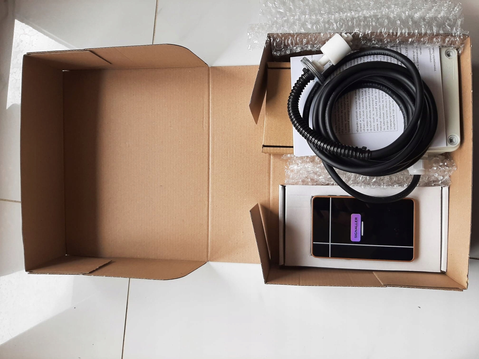 - Wireless transmitter resistant to atmospheric conditions with a 3-meter-long cable ended with a float probe, which should be placed in the septic tank,