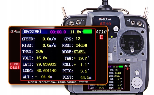 Управление уровнями сигналов RSSI в реальном времени, мониторинг напряжения приемника и напряжение пакета модели модели благодаря модулю PRM-01. Благодаря модулю PRM-02 вы можете отправлять текущие показания телеметрии с помощью APM или PIX, благодаря которой вы будете отображать информацию2 с GPS, скоростью, напряжением и т. Д. Прямо на ЖК-дисплее вашего аппарата AT10II.