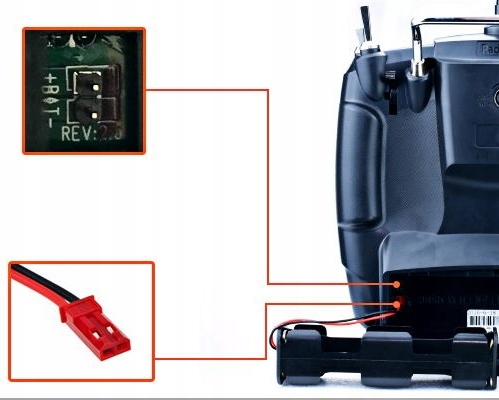 Защита в строительстве защитит вас от случайного противоположного соединения батареи. TX обладает защитой от обратной поляризации, что означает, что, несмотря на то, что вы подключаете2 "+" и "-" неправильно, он все равно не вызовет короткий замыкание, просто вытащите заглушку и правильно ее подключите. Это уникальная техника Radiolink. Универсальный JST-разъем аккумулятора и широкий диапазон входного напряжения обеспечивают большую емкость батареи, аккумуляторы AA или аккумулятор Lipo Type 2S-4S или другие типы батарей из отсека питания 7,4-15 В.