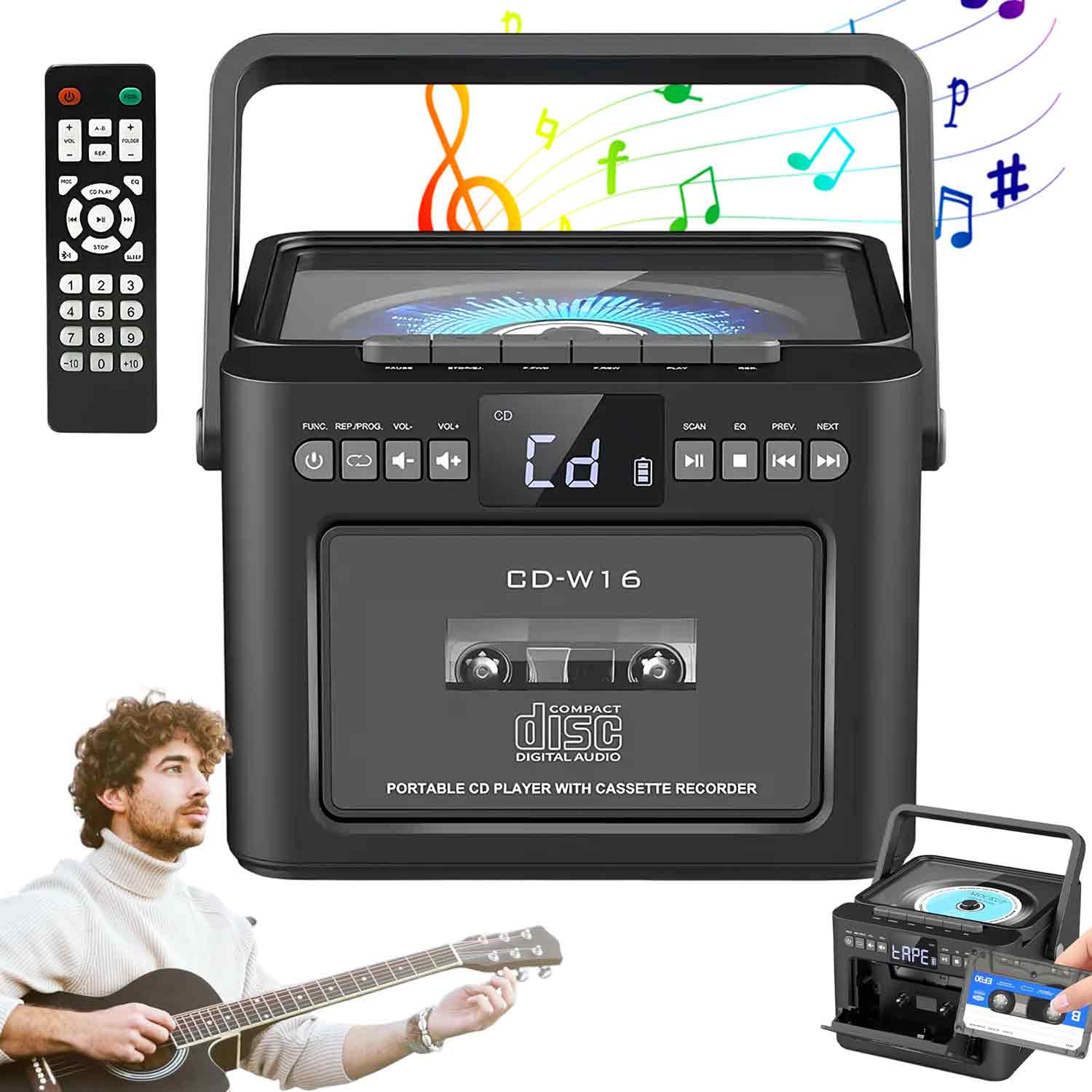 Ваша портативная музыкальная станция для компакт-дисков, кассет, радио, USB и многого другого! Идеально подходит для дома, путешествий и в качестве подарка.