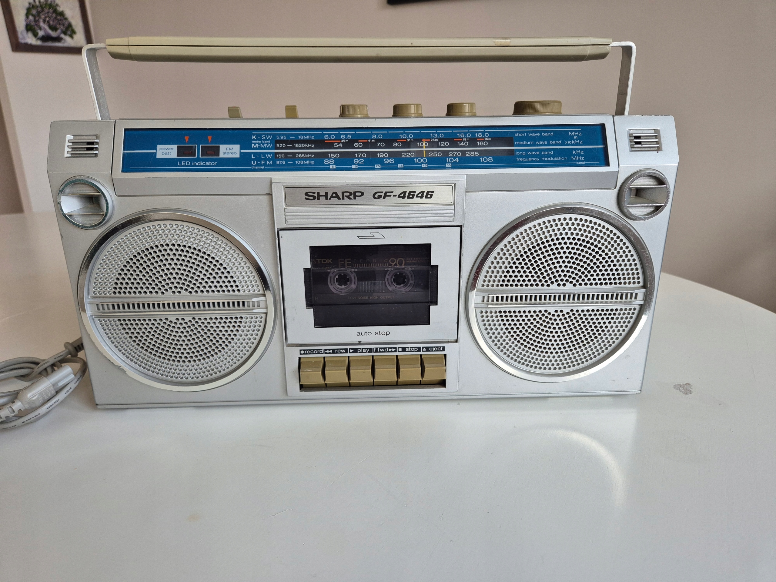 Продается магнитола SHARP GF-4646. Это хорошая техника из 80-х. Это экземпляр в очень хорошем состоянии - КОЛЛЕКЦИОННЫЙ. Однако спустя столько лет заметны следы использования. Техническое состояние - 100% рабочее. Привод магнитофона отремонтирован, ремень заменен.