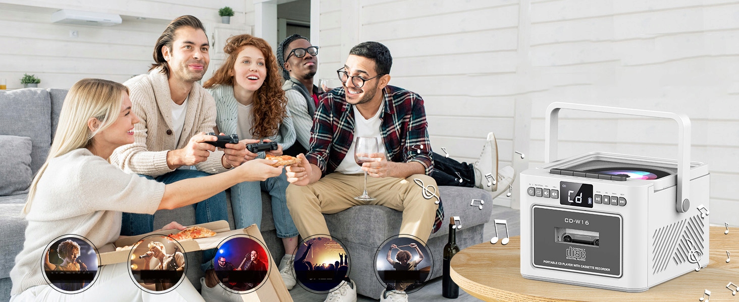 Этот портативный проигрыватель компакт-дисков — идеальный подарок для семьи и друзей. Это идеальный музыкальный компаньон на кухне, в спальне или во время активного отдыха. Благодаря тонкому дизайну и универсальным функциям это продуманный и практичный подарок.