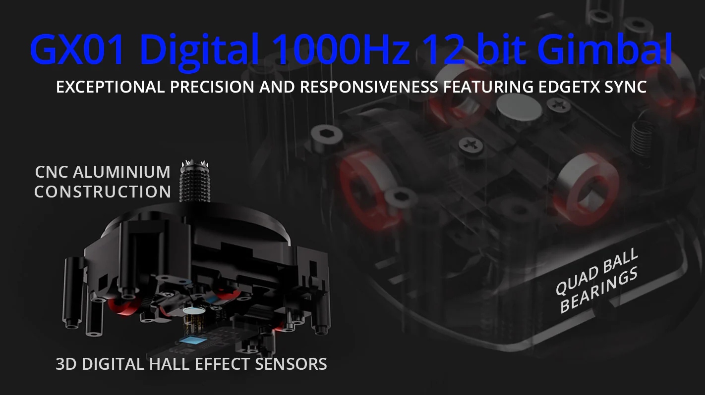 gimbale gx01 - Полностью алюминиевый, фрезерованный ЧПУ с датчиками 3D зала: точно разработанные алюминиевые шарниры, оснащенные датчиками 3D Hall, обеспечение исключительного контроля и долговечности.