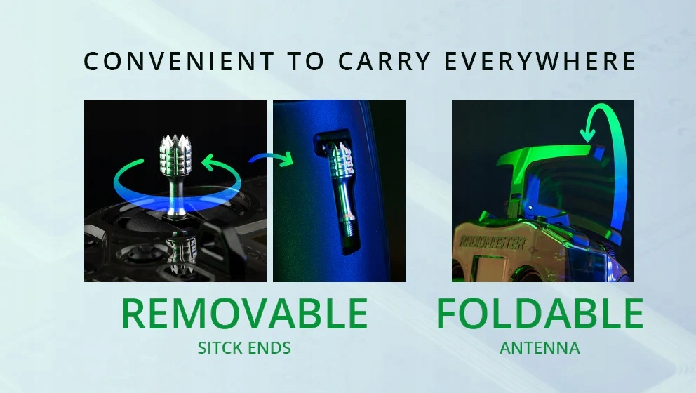 - – Портативная и легкая конструкция со съемными наконечниками клюшек и складной антенной.