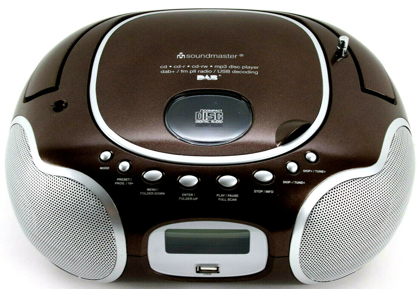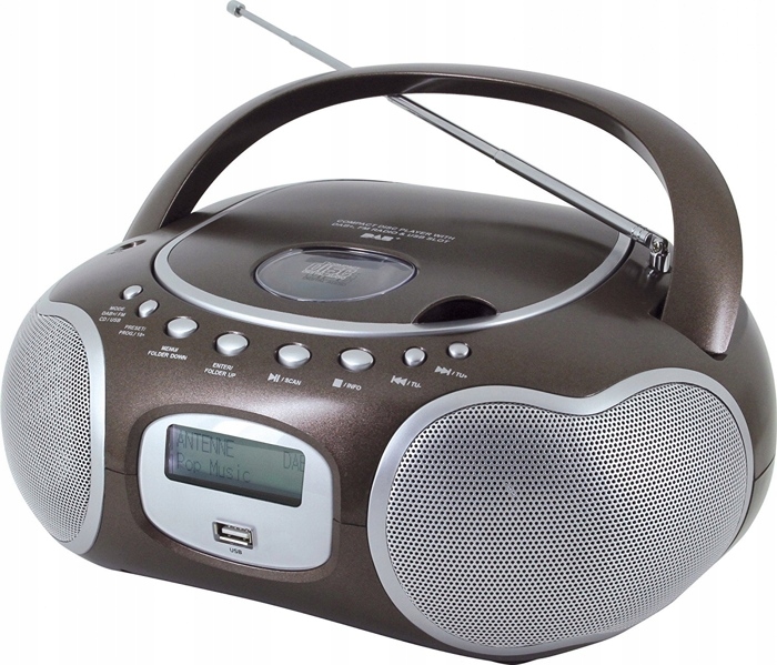 Коричневый CD-радио SoundMaster SCD4200 представляет собой аудиосистему в стиле бумбокса с проигрывателем компакт-дисков и радиотюнером DAB/FM. Он имеет встроенную память для хранения любимых радиостанций, а также порт USB и разъем 3,5 мм для подключения внешних устройств. Он питается от 6 батареек типа С и имеет два встроенных динамика мощностью по 3 Вт каждый.