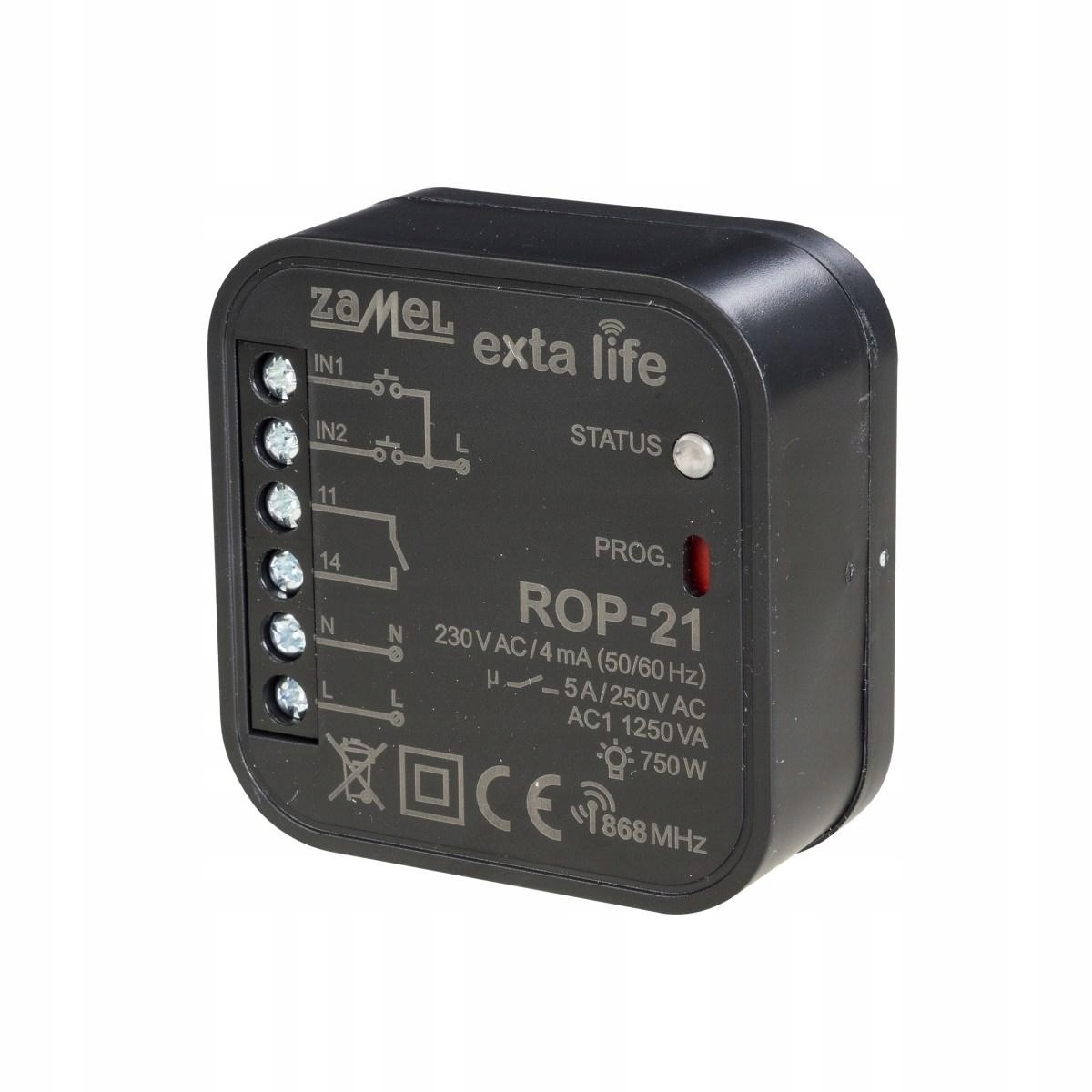 Радиоприемник РОП-21 является завершающим элементом системы EXTA LIFE , который позволяет управлять любыми устройствами дома или в офисе. Выход в виде одного нормально разомкнутого контакта позволяет управлять цепями низкого напряжения (например, 12/24 В переменного/постоянного тока) и цепями высокого напряжения (230 В переменного тока). РОП-21 также полезен для удаленного запуска других устройств и подачи управляющих сигналов. Ресивер также может с успехом использоваться для управления электромагнитными клапанами в системах отопления. Текущее состояние устройства, управляемого через РОП-21, отображается в мобильном приложении благодаря двунаправленной связи между приемником и контроллером. Этот метод связи также позволяет параметрировать приемник и удаленно добавлять передатчики (без физического доступа к приемнику). Алгоритм кодирования кадров обеспечивает безопасность управления. РОП-21 помимо контроллера может управляться параллельно с передатчиками системы EXTA LIFE. В приемник можно ввести большее количество передатчиков, что позволяет осуществлять независимое управление из нескольких мест. Устройство предназначено для установки в монтажные коробки под- и накладного монтажа. Дополнительные настраиваемые проводные входы повышают функциональность системы управления. В ресивере реализована функция удаленного обновления ПО с уровня контроллера.