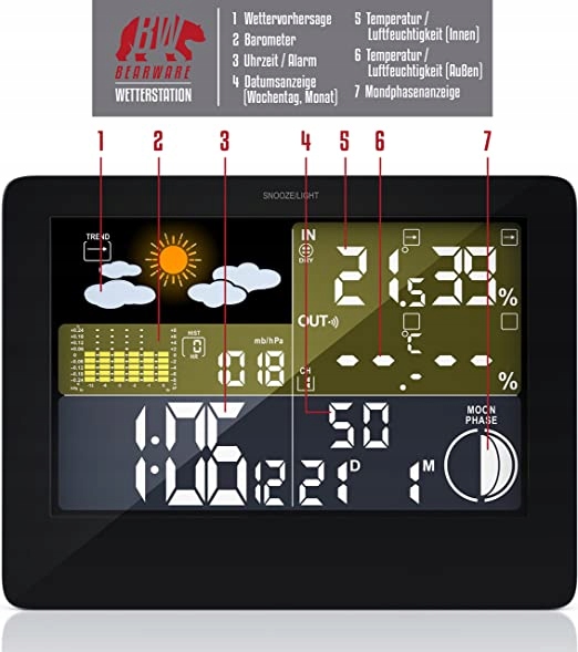 Радиостанция для охраны с внешним датчиком является идеальным решением для Люди, которые они хотят иметь текущую метеорологическую информацию дома или на рабочем месте. Устройство имеет много полезных функций, в том числе будильник, который облегчает установку сигнализации. Метеоспособная станция проста в использовании и имеет читаемый дисплей, где вы можете проверить такую информацию, как температуру, влажность и атмосферное давление. Благодаря внешнему датчику вы также можете проверить температуру и влажность вне здания. Это идеальное решение для людей, которые ценят функциональность и комфорт