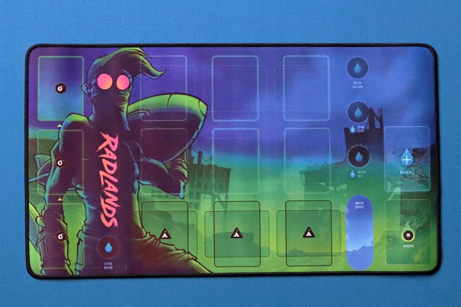 Radlands — набор неопреновых подушечек для более четкого изображения постапокалиптического хаоса на столе. Обе подушечки полноцветные, асимметричные и с прошитыми краями для увеличения срока службы. Улучшите свои впечатления от игры Radlands!