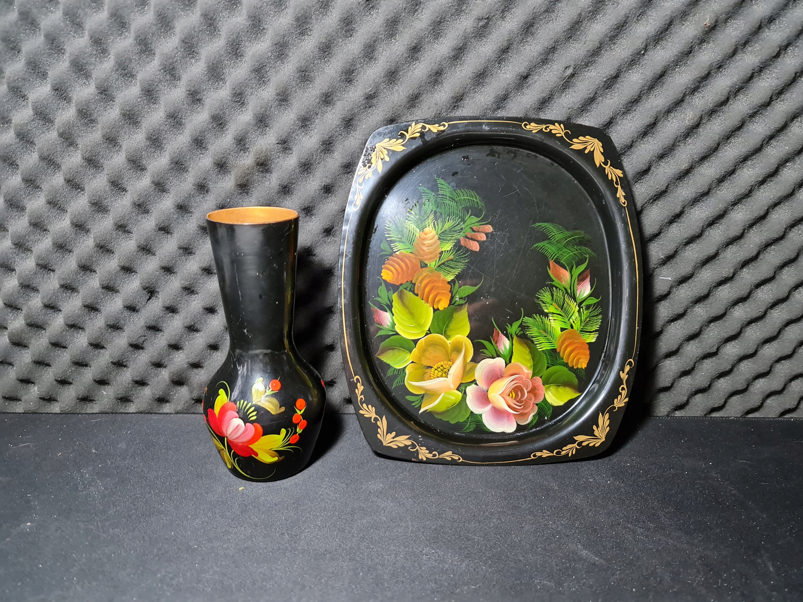 СОВЕТСКИЙ ЭМАЛЬНЫЙ ПОДНОС И ВАЗА ПРЛ