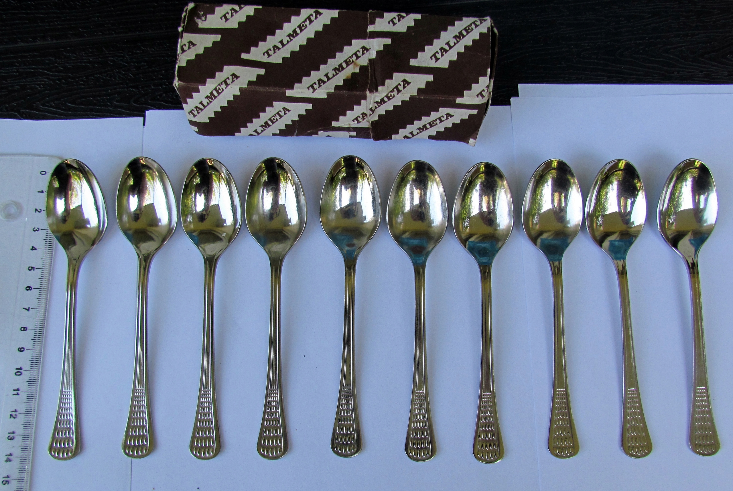 Предлагаю НАБОР из 10 штук советских ЧАЙНЫХ ЛОЖЕК ТАЛМЕТА, НОВЫХ, НЕ ИСПОЛЬЗОВАННЫХ ПОСЛЕ ПОКУПКИ, из Польской Народной Республики. Ложки в оригинальной упаковке с этикетками-сертификатами на русском языке. Ложки не имеют следов использования и находятся в прекрасном состоянии, что видно на прилагаемых фотографиях. Длина ложки: от 14,2 см, размеры черпака 45 х 30 мм. Рекомендую.