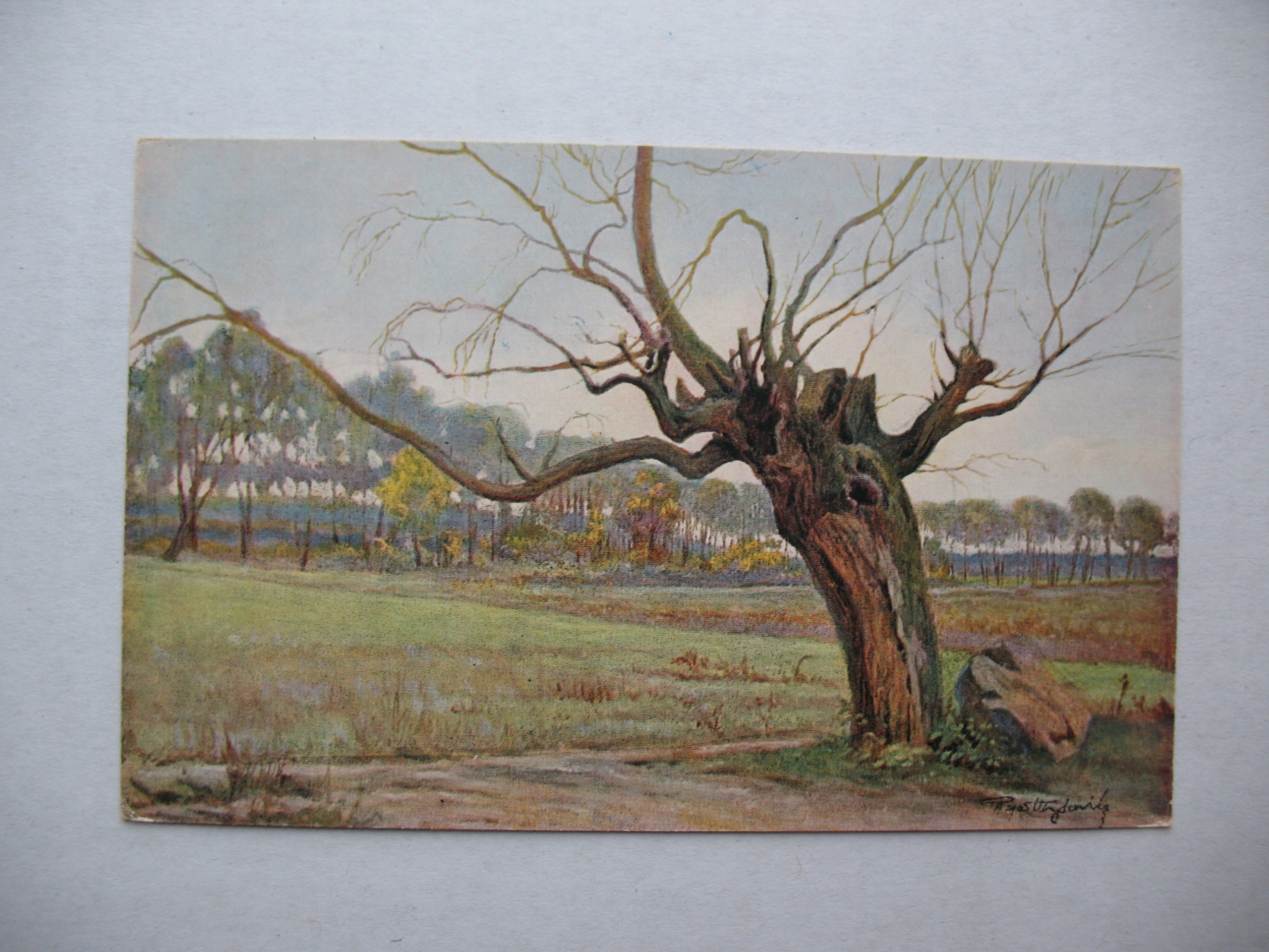 RAFAŁ WĄSOWICZ KRAJOBRAZ POLSKI STARA WIERZBA przedwojenna POCZTÓWKA