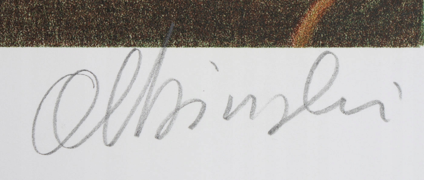 Техника: цветная литография на бумаге . Изображение подписано и пронумеровано карандашом под композицией: "99/350 | Ольбинский" (оригинальная подпись).