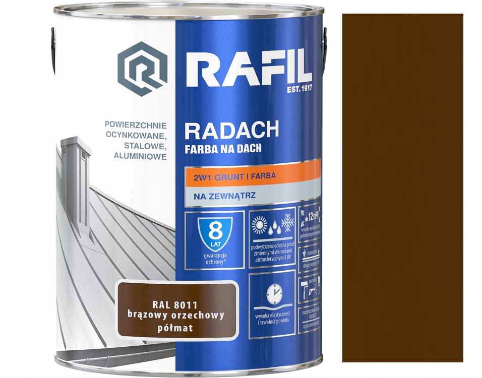 RAFIL ROOF КРАСКА ОРЕХ КОРИЧНЕВАЯ ПОЛУМАТОВАЯ 8011 5л