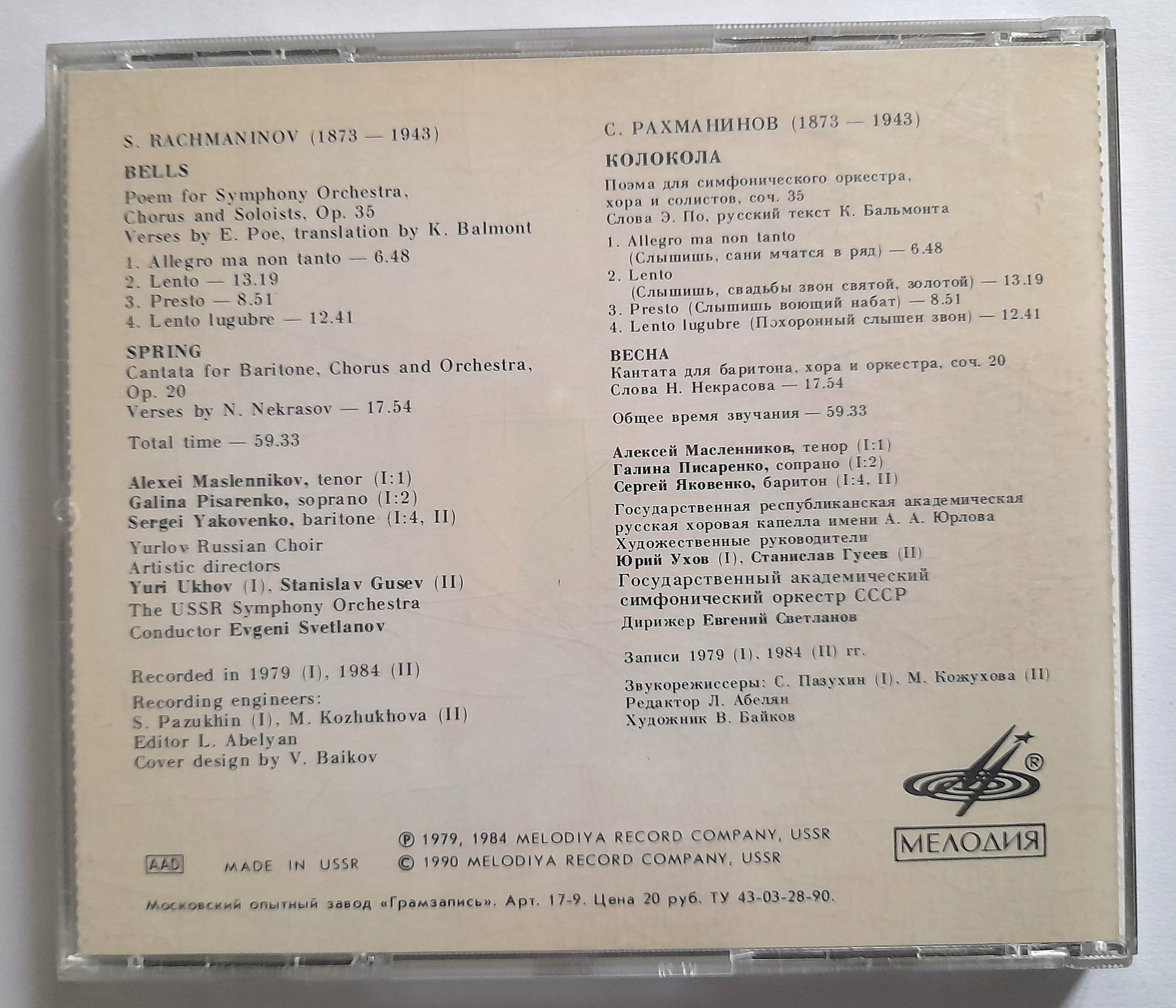 Рахманинов - колокола, стихотворение для хора, солистов и оркестра весеннее компакт -диск