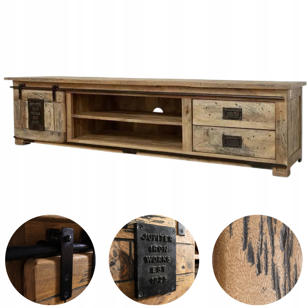ЖЕЛЕЗНОДОРОЖНАЯ ШКАФ ДЛЯ ТЕЛЕВИЗОРА Лофт из цельного дерева манго, вощеный