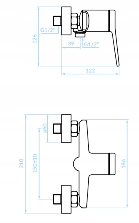Душ соединение: ½"
