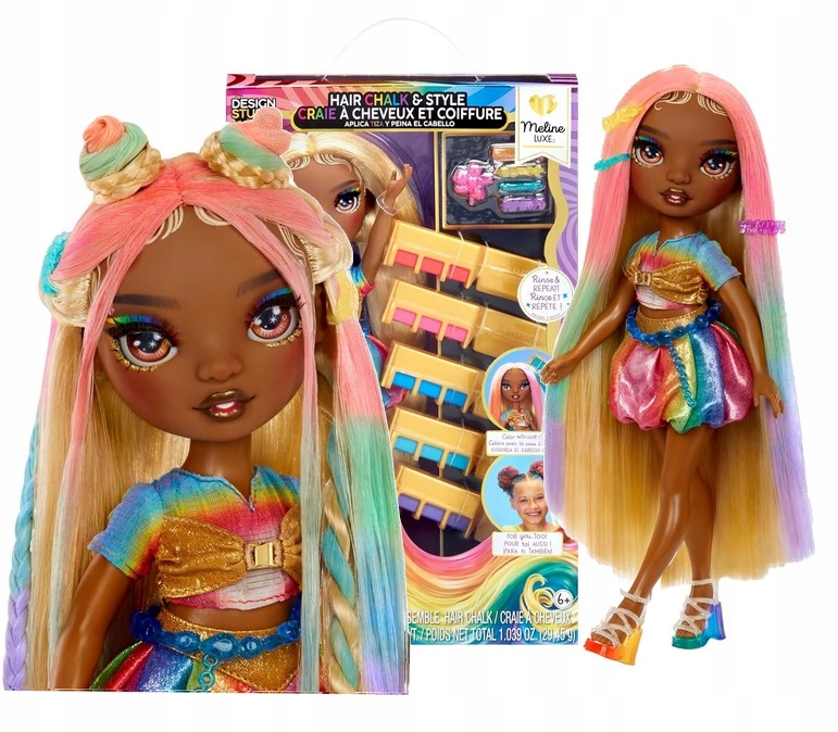 RAINBOW HIGH HAIR CHALK & STYLE МОДНА ЛЯЛЬКА Meline + крейда для волосся