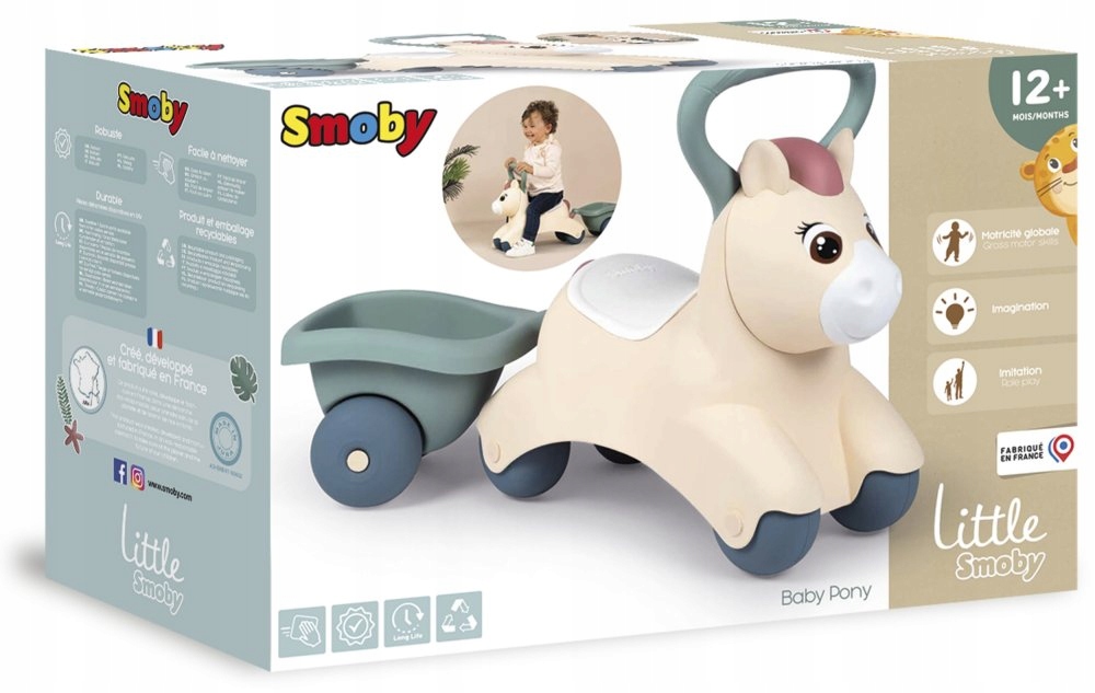 The First Pony Ride-On с прицепом 140502 — безопасное и устойчивое транспортное средство для детей. Широкие устойчивые колеса, удобное сиденье и веселая мордашка пони подчеркивают характер катания, гарантируя отличное и безопасное развлечение. Форма сидения спроектирована так, чтобы на нем мог комфортно передвигаться маленький водитель. Входящий в комплект прицеп еще больше оживит веселье: ваш малыш сможет перевозить все свои находки или игрушки. Простая в использовании благодаря эргономичной ручке, коляска позволит вашему ребенку развивать моторику во время игры. Детям будет весело и разнообразно с набором, который обязательно порадует своими яркими и красивыми цветами. Эта фантастическая игрушка отлично подойдет как дома, так и на природе, гарантируя много часов радостной и совершенно безопасной игры.