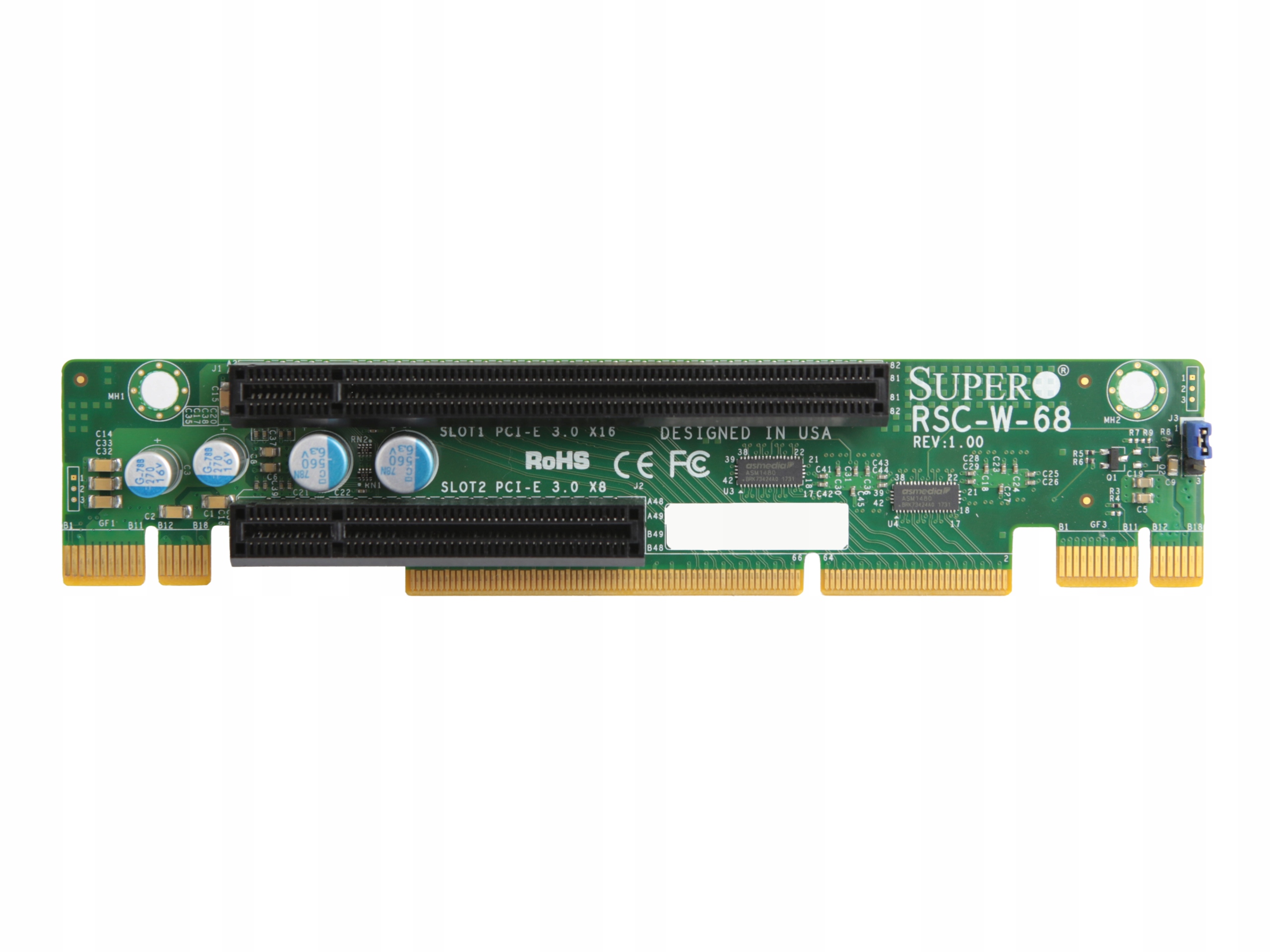 Riser Supermicro RSC-W68 — оригинальный адаптер расширения, предназначенный для серверов Supermicro. Эта модель позволяет устанавливать карты расширения в горизонтальной конфигурации на левой стороне корпуса слева. Райзер поддерживает интерфейс PCI Express 3.0, что обеспечивает высокую пропускную способность данных. Он оснащен одним разъемом PCIe 3.0 x16 и одним разъемом PCIe 3.0 x8. Конструкция стояка позволяет эффективно использовать пространство внутри серверного корпуса. Продукт предназначен для работы с некоторыми корпусами и материнскими платами Supermicro. Riser позволяет устанавливать сетевые карты, RAID-контроллеры или карты HBA. Высокое качество изготовления гарантирует стабильную и надежную работу системы. Этот продукт был разработан для профессионального использования и серверных сред. RSC-W68 поддерживает стандарты, необходимые для инфраструктуры корпоративного класса. Монтаж стояка прост и соответствует документации производителя. Адаптер обеспечивает правильный сигнал и питание для карт расширения. Продукт идеально подходит для серверов с ограниченной высотой. Riser совместим с картами PCIe 3.0 и более старыми версиями PCIe.