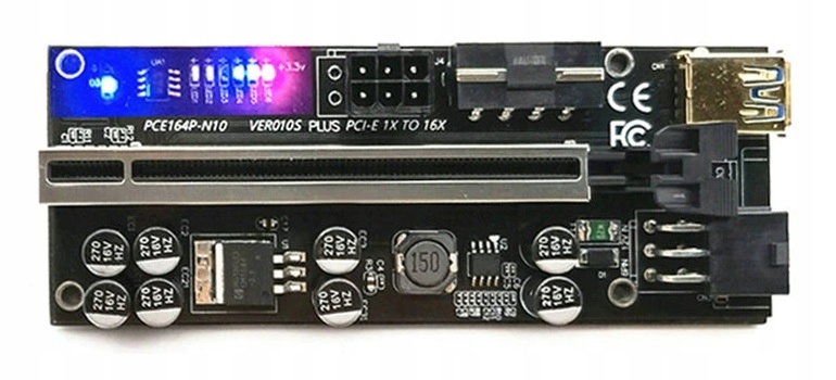 По сравнению с предыдущими версиями, например 006C, новая версия 010S имеет улучшенный чипсет и 6 светодиодов 3,3 В и 12 В, указывающее рабочее состояние райзера, и 8 конденсаторов для более стабильной работы.