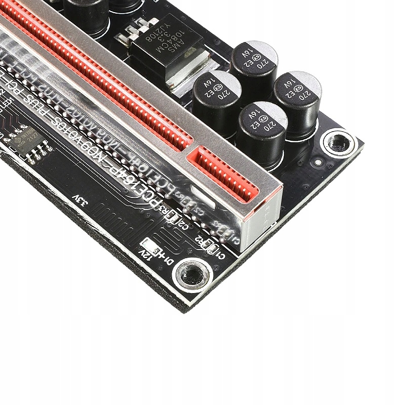 По сравнению с предыдущими версиями, например 006C, новая версия 010S имеет улучшенный чипсет и 6 светодиодов 3,3 В и 12 В, указывающее рабочее состояние райзера, и 8 конденсаторов для более стабильной работы.