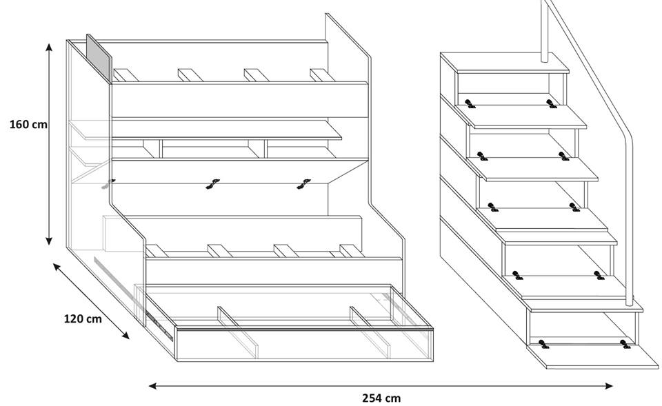 - отсеки для хранения вещей по всей длине лестницы (5 шт.)