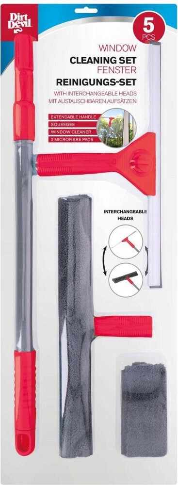Устали мыть окна или зеркала обычной тряпкой? Вам нужно что-то, что облегчит мытье высоких окон? СКАБЕЛЬ ДЛЯ ЧИСТКИ ОКОН И ЗЕРКАЛ DIRT DEVIL С ТЕЛЕСКОПИЧЕСКОЙ РУЧКОЙ 5в1 поможет вам очистить даже высокие окна или зеркала без использования лестницы. Телескопическая ручка поможет подогнать ее длину под размер окна, а сменные накладки из микрофибры насухо протрут стекло. С этим набором мытье окон станет удовольствием, а не наказанием!