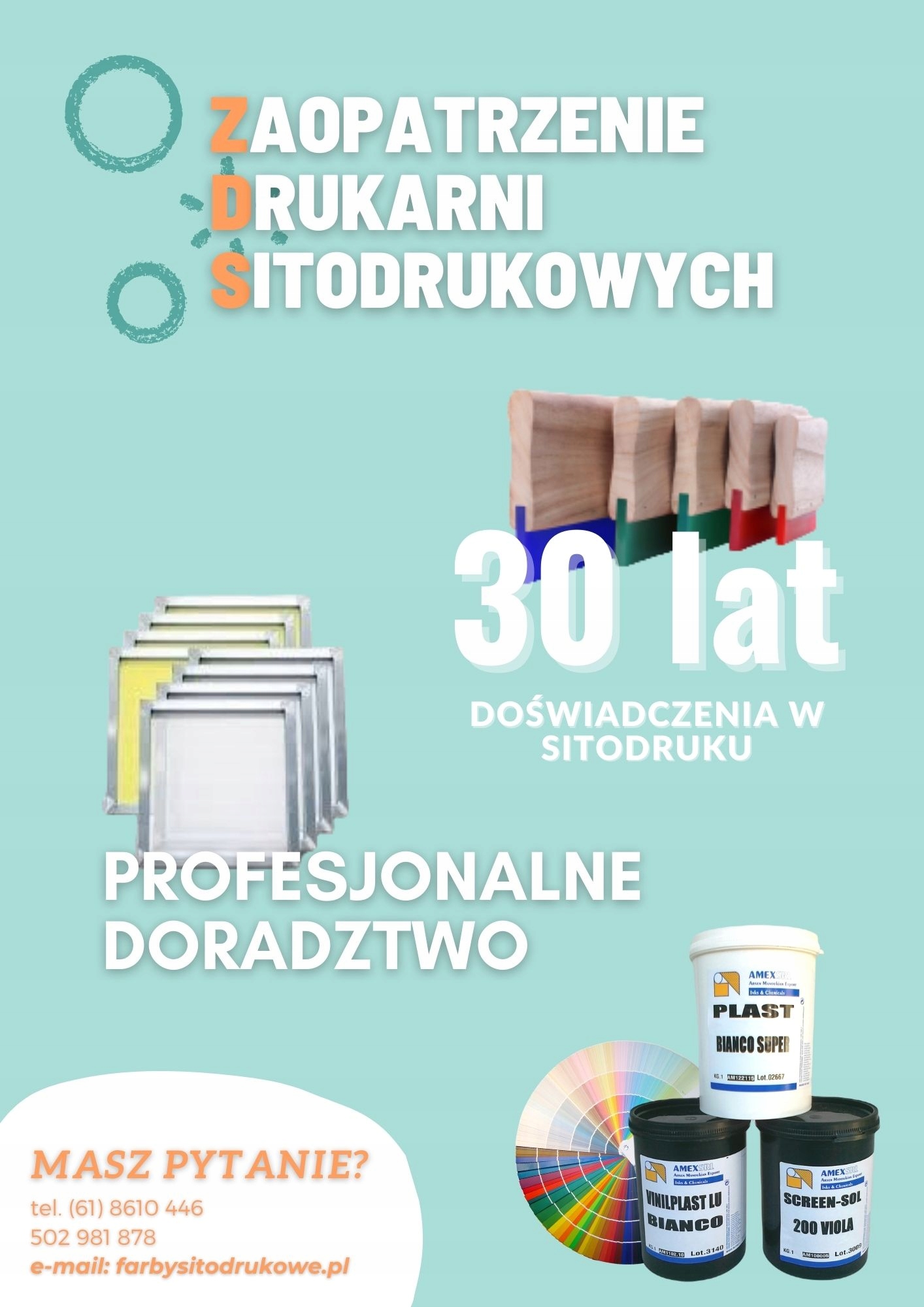 Мы также предоставляем консультации по трафаретной печати, выбору красок и химикатов. Мы предоставляем услуги по натяжению и обнажению сетки. Оснащаем типографии машинами и устройствами для трафаретной и тампопечати, фоторамками, шайбами и т.д. Реализуем краски и химикаты для трафаретной и тампопечати, позволяющие наносить стойкие отпечатки на натуральные и искусственные ткани, бумагу, дерево, пластик. : ПВХ, ПП, ПЭ, стекло, металл, резина (воздушные шары) и др. Мы обладаем 30-летним опытом работы в отрасли и руководствуемся профессионализмом, благодаря которому нам доверяют поколения полиграфистов.