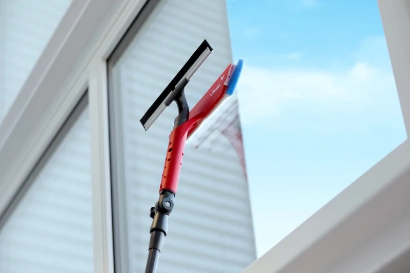 Окономойщик Vileda с телескопической штангой – идеальное решение для тех, кто хочет эффективно и быстро вымыть окна без использования лестницы.