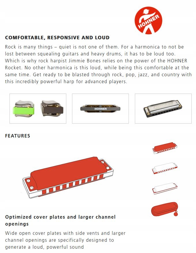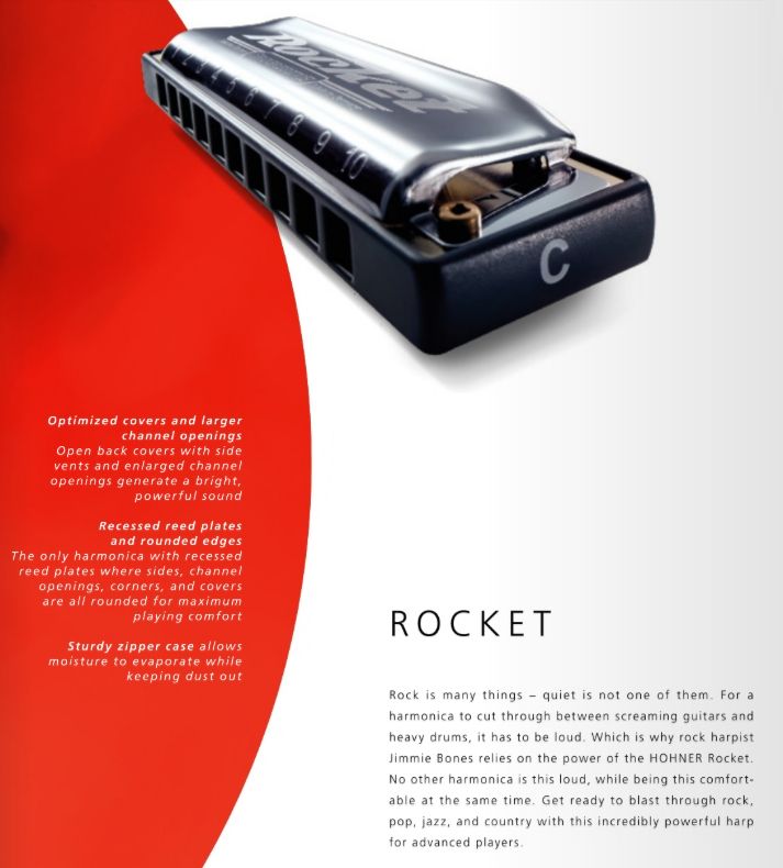 о рок -музыке, вы можете сказать много вещей, но «тихо» определенно не является одним из них! Чтобы ваша гармоника не исчезала среди острых гитар и тяжелых барабанов, она должна быть одинаково громкой. Вот почему многие каменные гармоники, такие как Джимми Кости, лежат в силе гармоники Хонера. Трудно найти гармоника, которая была бы такой громкой и выразительной, но удобной играть одновременно. Расставьте гармонискую ракету и попасть в звук металла, кантри и рок -музыки. Diatonic