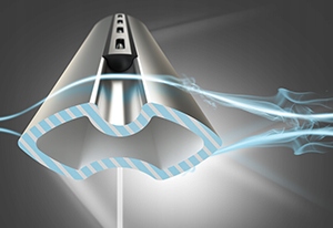 Обтекаемая форма, вогнутая внутри рамы, обеспечивает отличную аэродинамику. За счет использования такого профиля увеличивается длина струн, которые скрываются в конструкции и повышают ее аэродинамику. Эта комбинация увеличивает оптимальную зону удара, переносит большую силу на макушку и увеличивает скорость ракетки, придавая мячу уникальную скорость при ударе.