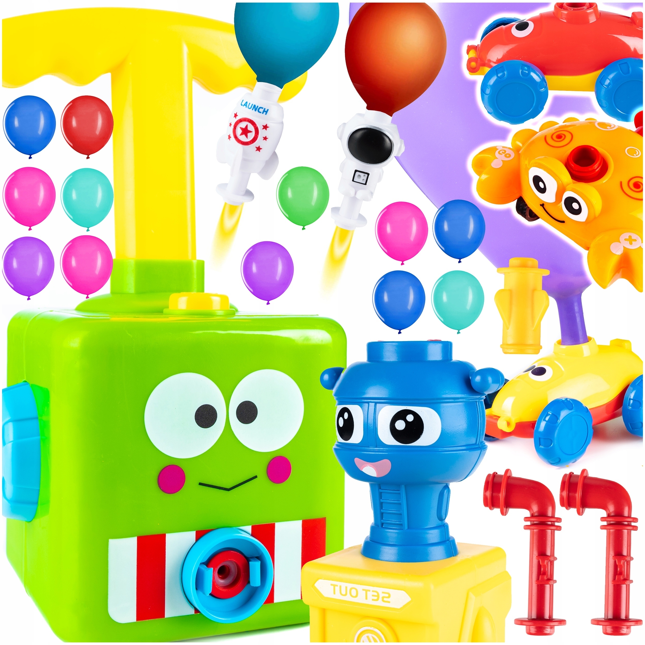 Пневматическая пусковая установка для автомобилей и ракет. Игрушка безопасна и очень проста в использовании, достаточно надуть шарик и запустить транспортное средство.