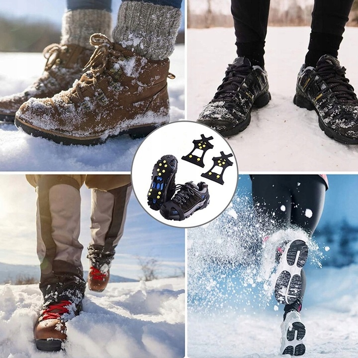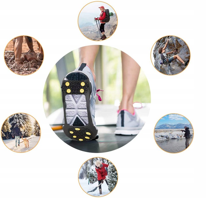 Металлические шипы вгрызаются в лед, снег и землю, что обеспечивает отличное сцепление, а резиновая накладка адаптируется к размеру обуви.< /b >