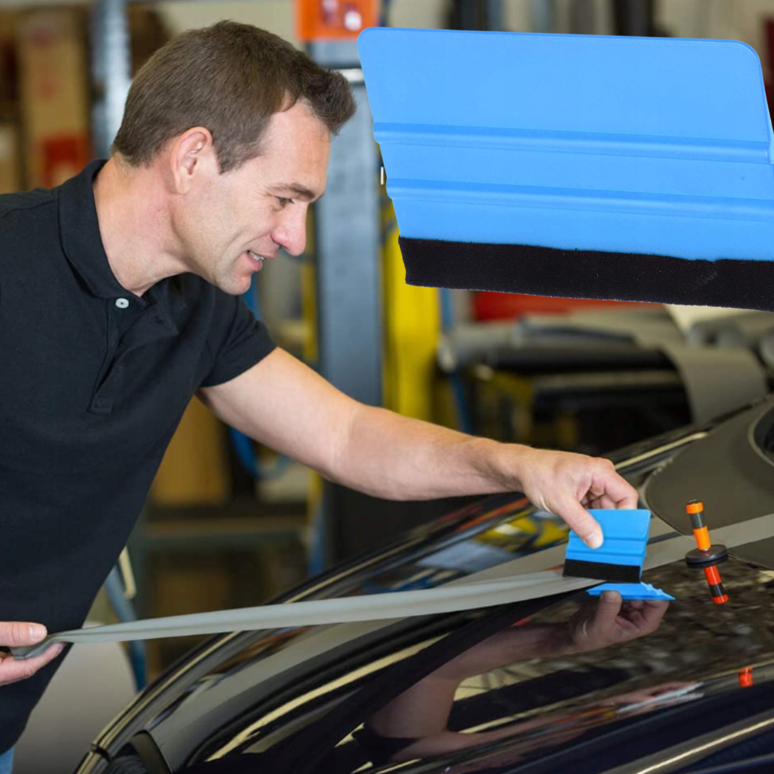 Фольга лишена пузырьков воздуха и создает хорошо прилипающий слой. Фетровый ракель имеет бороздки, благодаря которым его легче держать в руке. Такая конструкция также увеличивает силу трения.