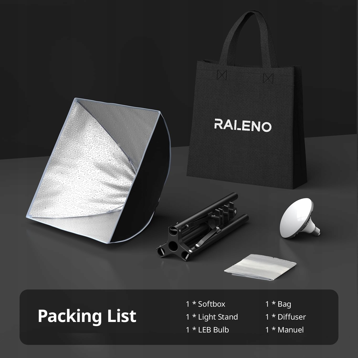 RALENO Софтбокс, комплект для фотостудии со светодиодной подсветкой 50 Вт, 40 x 40 см