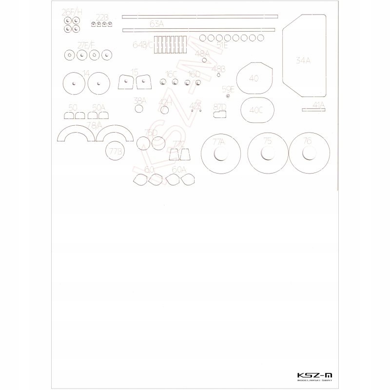 Элементы модели, вырезанные лазером, которые в исходном вырезе требуют склейки картоном соответствующей толщины. Эти элементы точно вырезаются лазерным плоттером сразу в картоне соответствующей толщины и требуют лишь выталкивания пальцем из листа (соединяются они только небольшими разъемами).