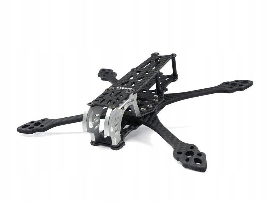 Все элементы изготовлены из высококачественных материалов. В основе рамы лежат прочные рычаги толщиной 6 мм и пластины из углеродного волокна 3К, что обеспечивает прочность, жесткость и надежность конструкции даже в сложных условиях полета