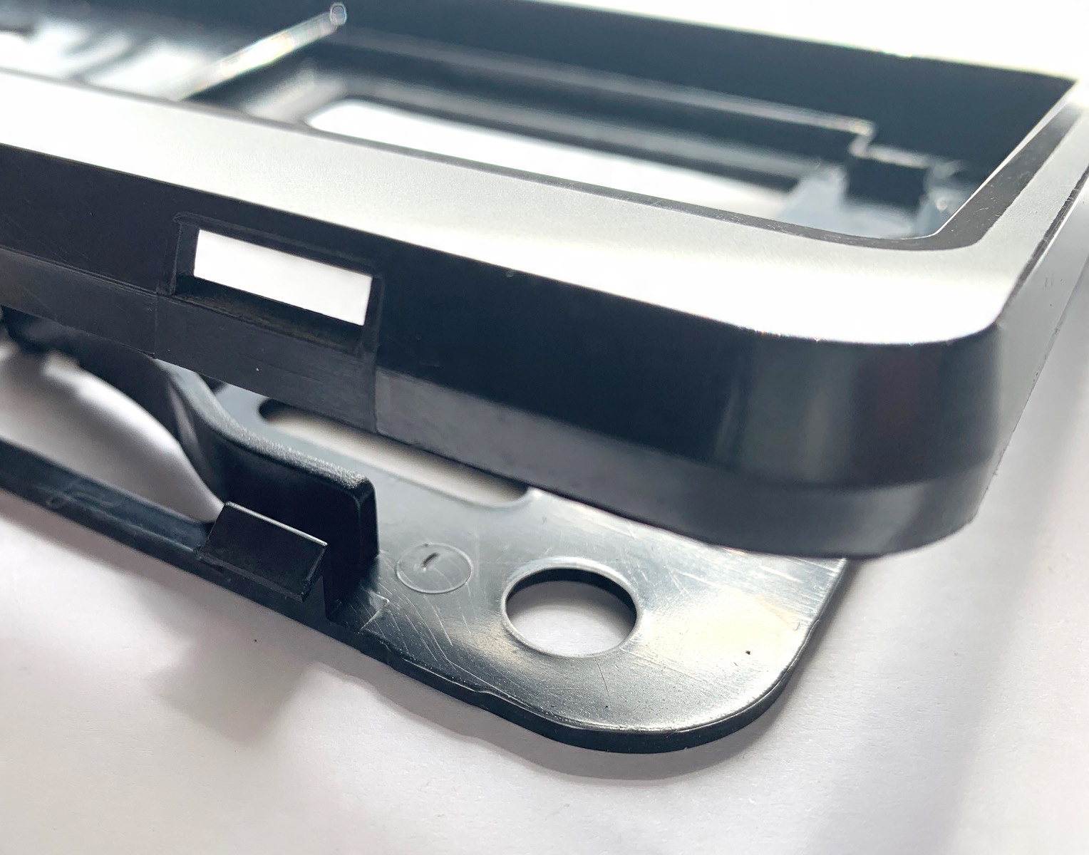Легкая сборка - достаточно прикрутить рамку и защелкнуть нижние крючки - рама рамки имеет саморегулирующиеся элементы, позволяющие очень хорошо закрепить номерные знаки различной высоты.