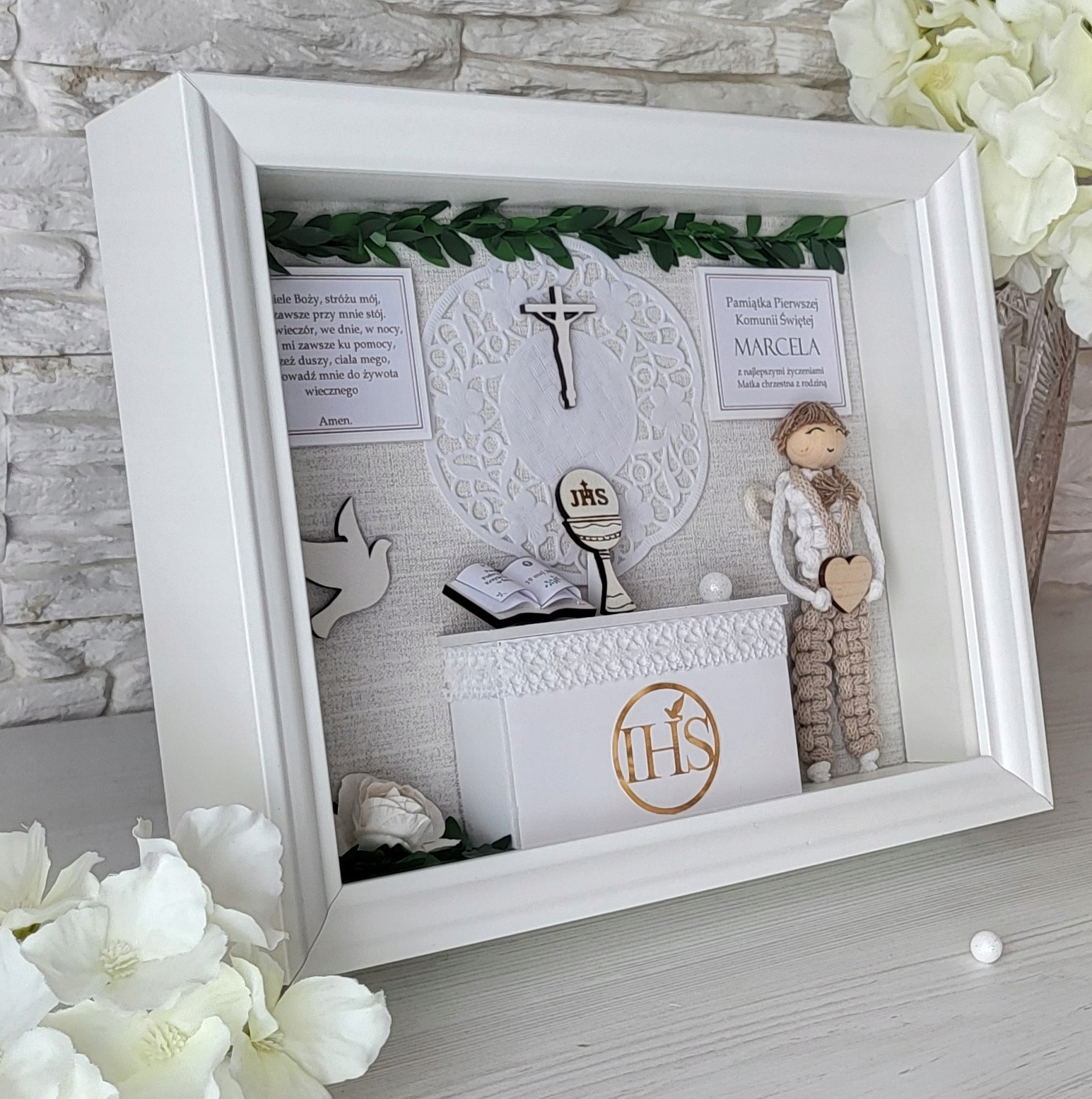 ✅ Белый 3D -3D -кадр с фрезерованными сторонами добавляет очарование и элегантность. Отличный подарок, посвященный этому важному моменту! Его можно предложить ребенку, но также дать крестный отец или других важных гостей.